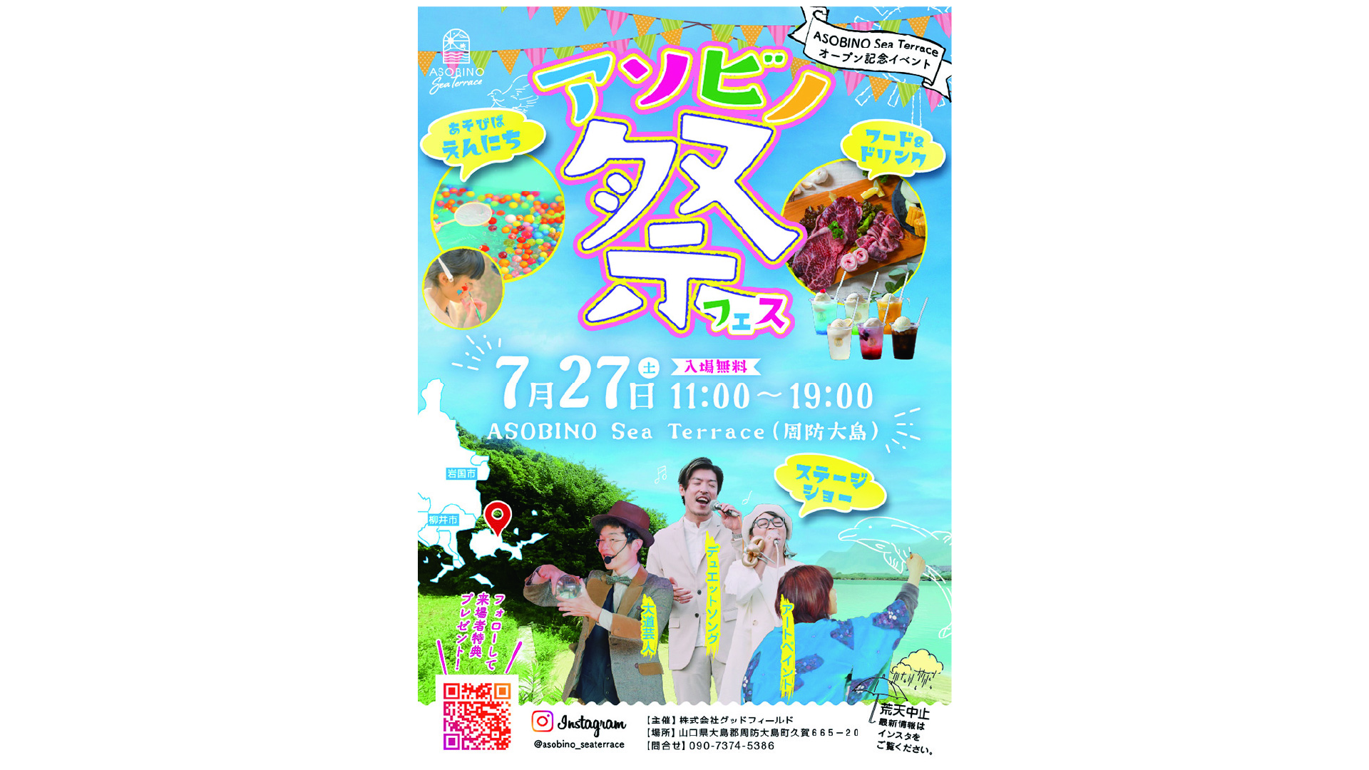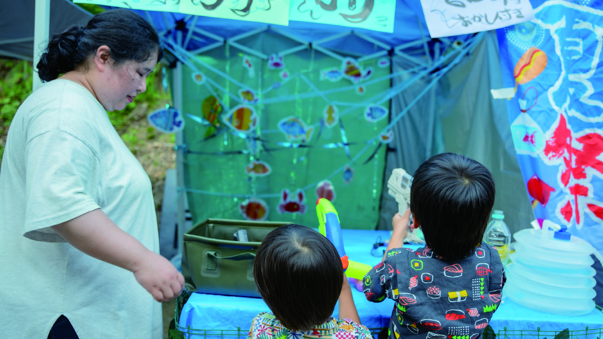 山口県の周防大島。新しくオープンしたのを記念に親子向けのお祭りを実施。大道芸やプロのシンガー、子供たちが好きな縁日を実施。