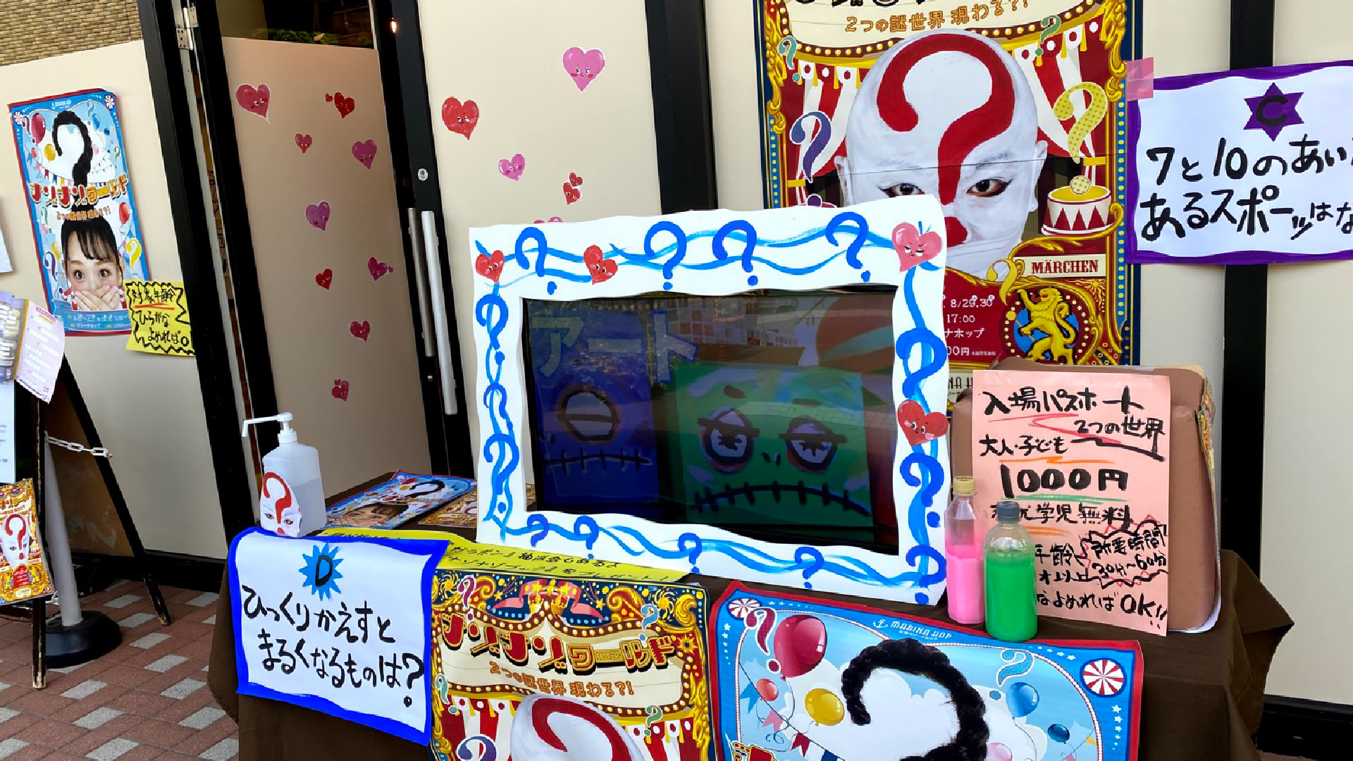 コロナ対策を実施したニューノーマルな謎解きゲーム。アートの世界とメルヘンの世界の2つの謎世界を行き来しながら数ある謎を解く。期間中に数日、特別イベントとして役者を加えてより世界観に没頭できるイベントを開催。その日には来客者数増加となった。 参加賞として、なぞなぞが詰まったブック、ガラガラをして商品券が当たるくじなどをプレゼント。